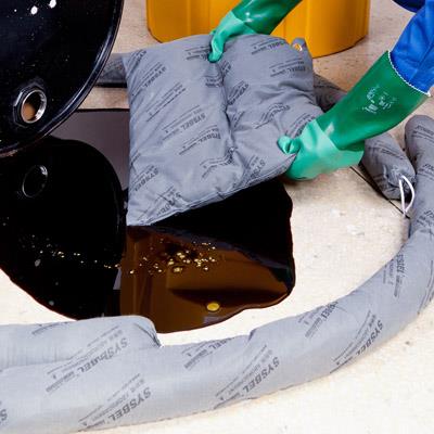 Defnyddiwch yr amsugnyddion Kits SYLWEL SYLWEL: tynnwch sachau amsugnol yn gyflym i ddargyfeirio a rhwystro'r deunydd sydd wedi'i ollwng cyn iddo gael cyfle i ledaenu; glanhau'r gollyngiad cynhwysfawr gyda padiau a choluriau amsugnol trwy fesur maint y gollyngiad. Ar gyfer y driniaeth i ddeunyddiau gwenwynig, mae'n bwysig defnyddio caniau priodol i wireddu ynysu.